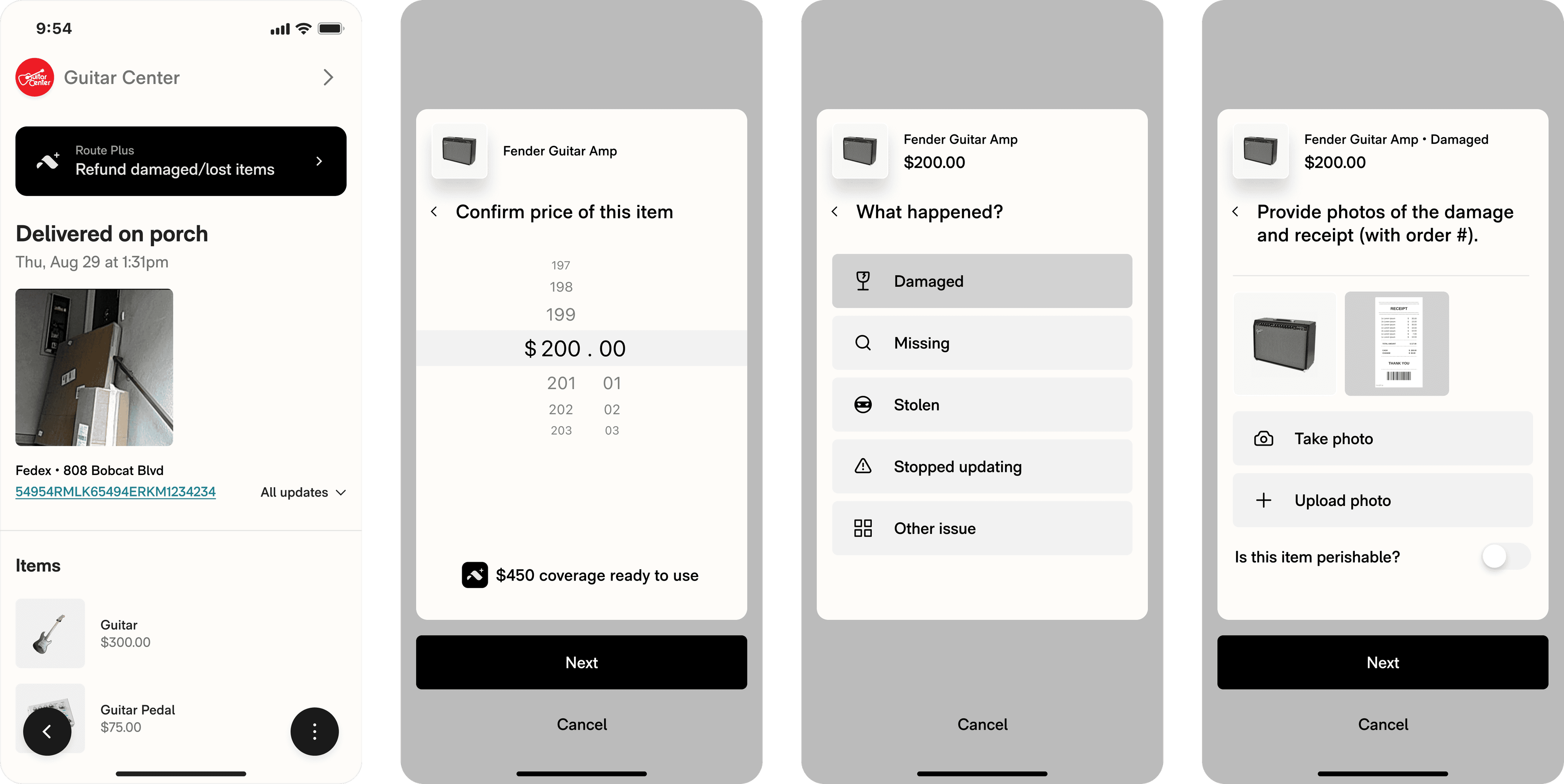 Users get $500 of coverage each 30 day period. Users file a claim if orders are lost or damaged, uploading evidence and proof of purchase, deferring months of backend work automating it.